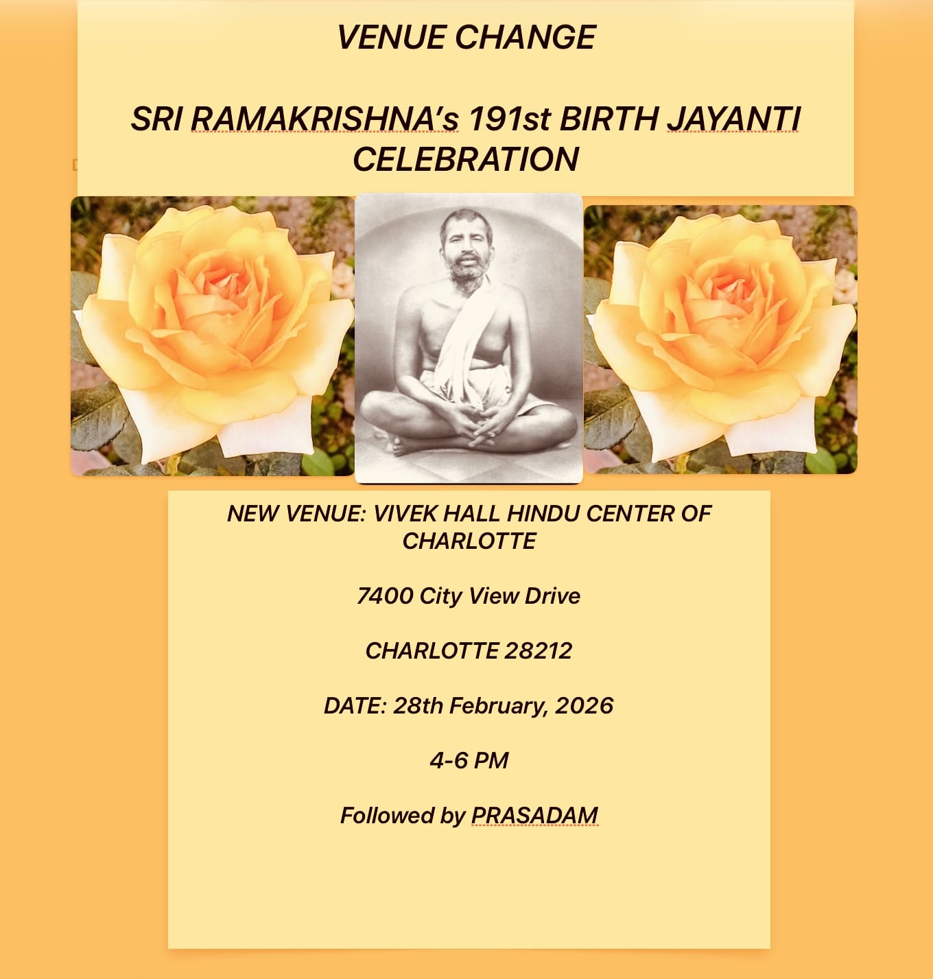 Phone: Banashri 980-248-8370, Kamalesh 704-449-5609, Krishna 832-691-9247